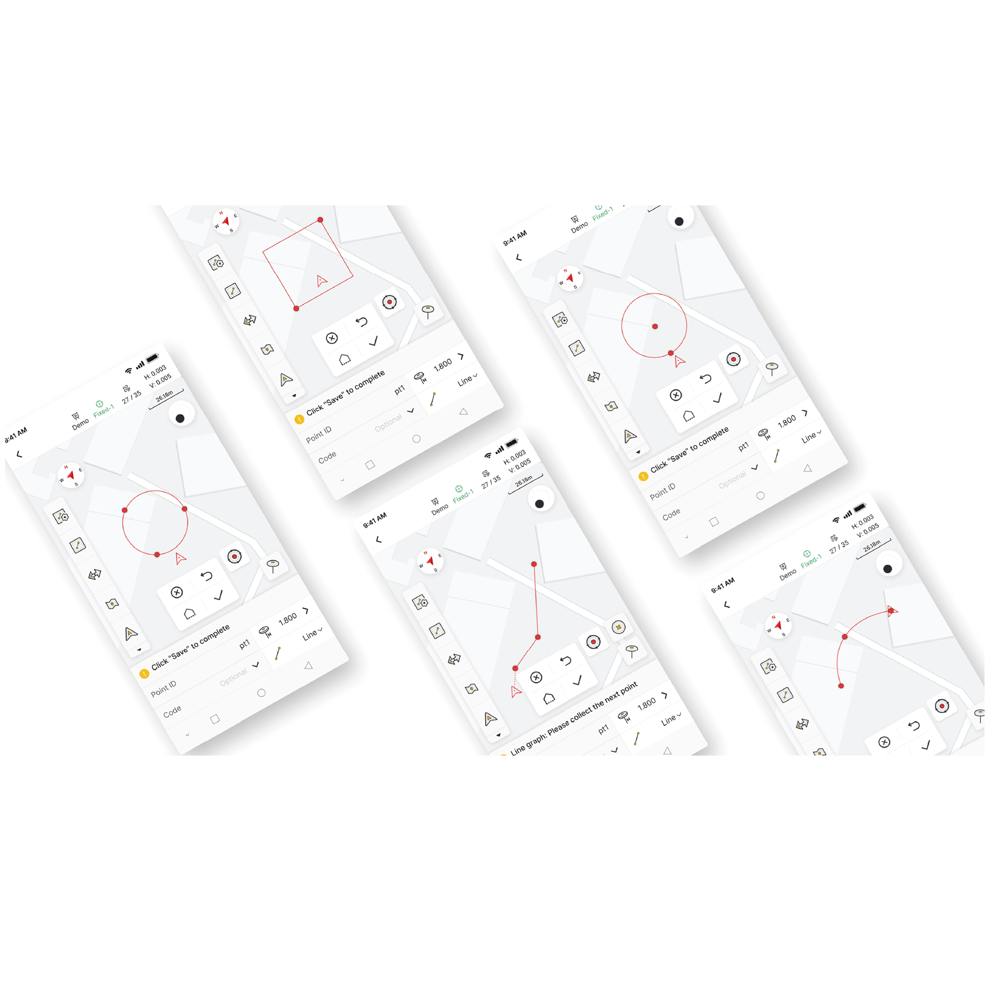 Get accurate positioning data and measure/draw 10 common shapes (including polylines, circles, and rectangles). You can also make code-based measurements with clear graphic categories to speed up post-survey mapping.