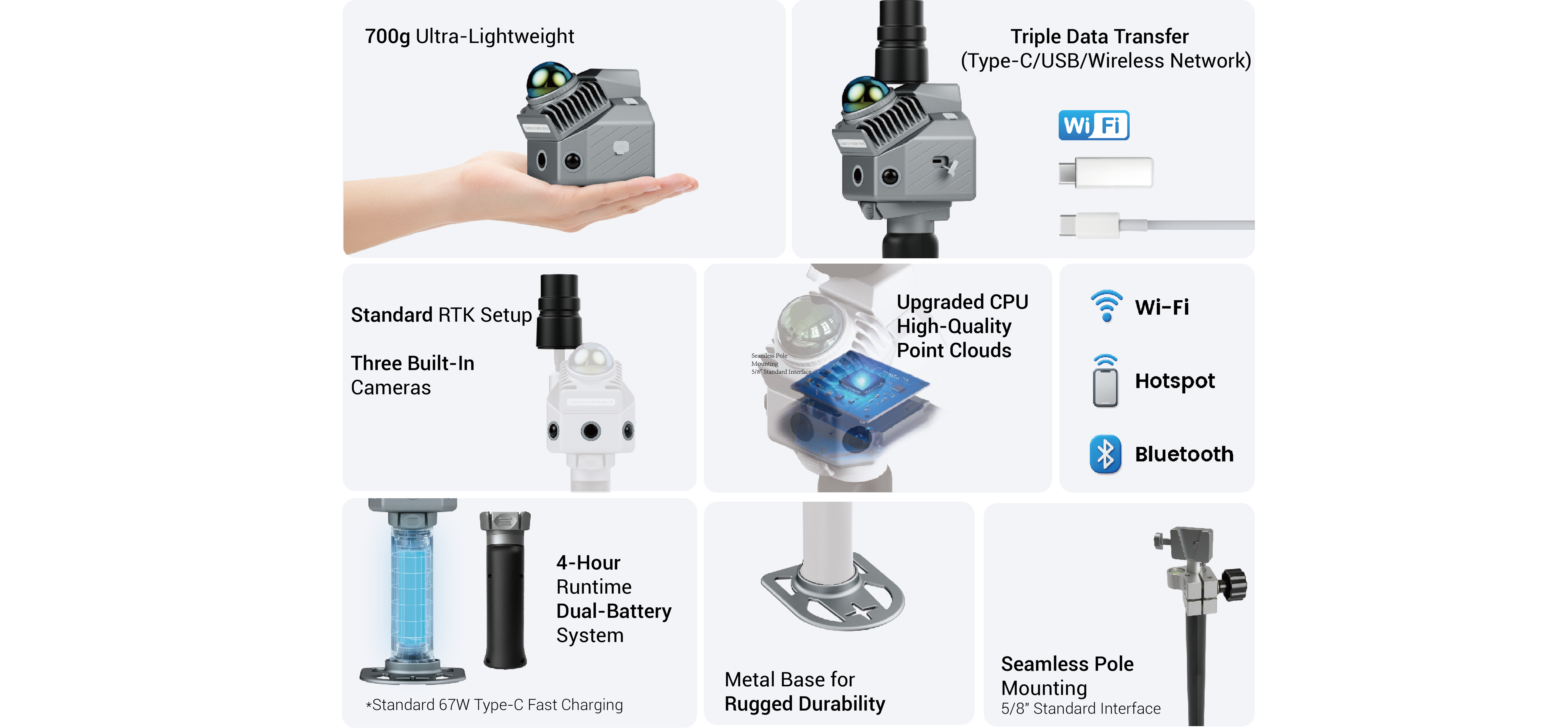 The next-generation FJD Trion P2 LiDAR Scanner combines groundbreaking portability with industrial-grade accuracy. Engineered for seamless field operations, it delivers centimeter-level precision, real-time colorized point clouds, and multi-format deliverables—all in a compact 700g body. Whether mapping complex landscapes or capturing intricate details, the Trion P2 empowers professionals, surveyors, and 3D scanning enthusiasts to achieve more with less effort.